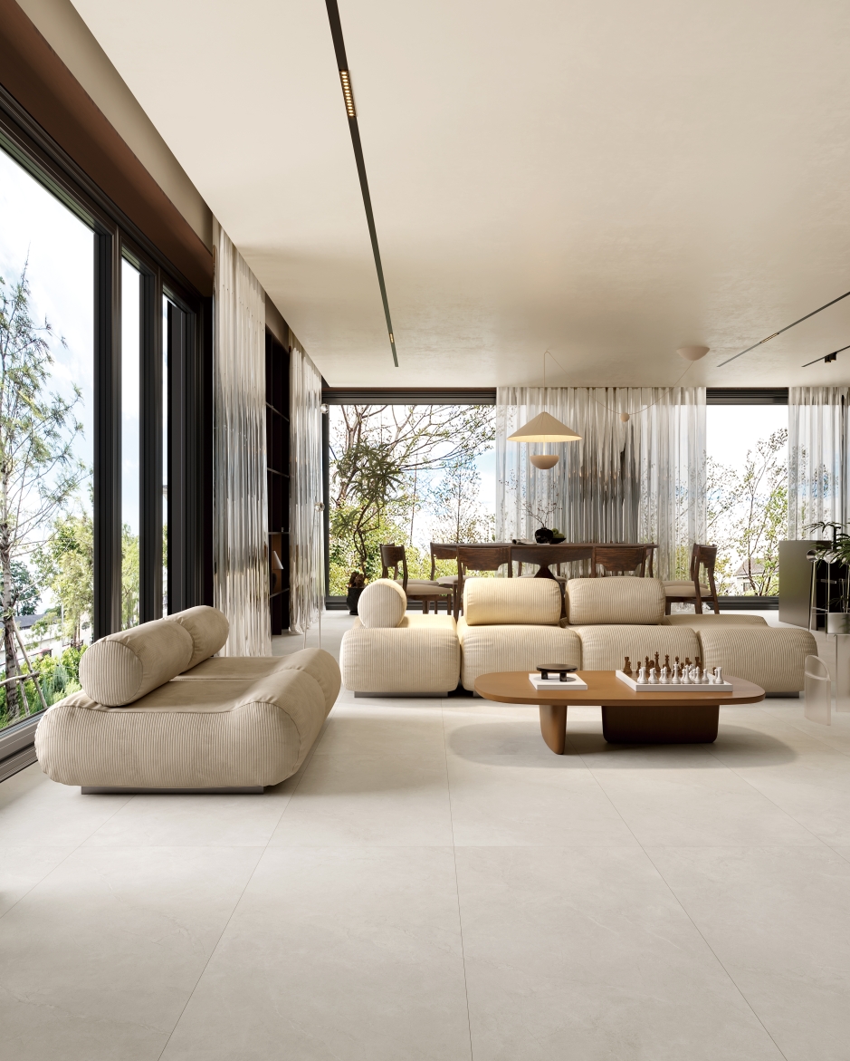 自然純粹的米灰底紋上漂浮著淡淡的銀白色紋理,是時光賦予的溫柔,表面紋理簡約、悅目,悠然地展現(xiàn)出米灰的深沉與靜謐,記錄時光的流轉(zhuǎn),創(chuàng)造出一片獨特的空間奇跡。