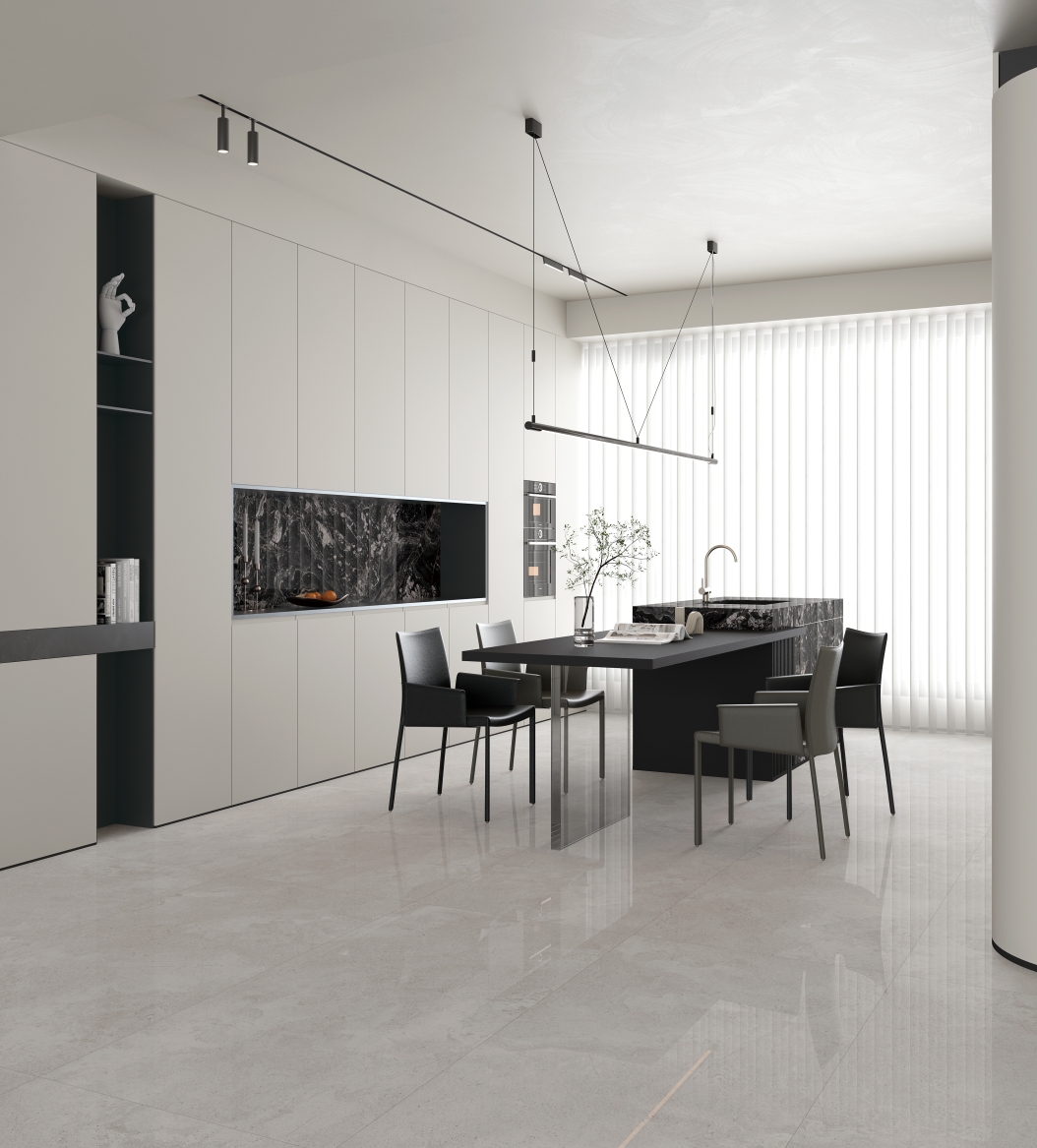 獨(dú)特時(shí)尚的米杏色調(diào),變幻莫測(cè)的漸變紋理流動(dòng),彷如歲月的雕琢,給空間帶來(lái)連貫、完整、延伸的無(wú)垠視界。